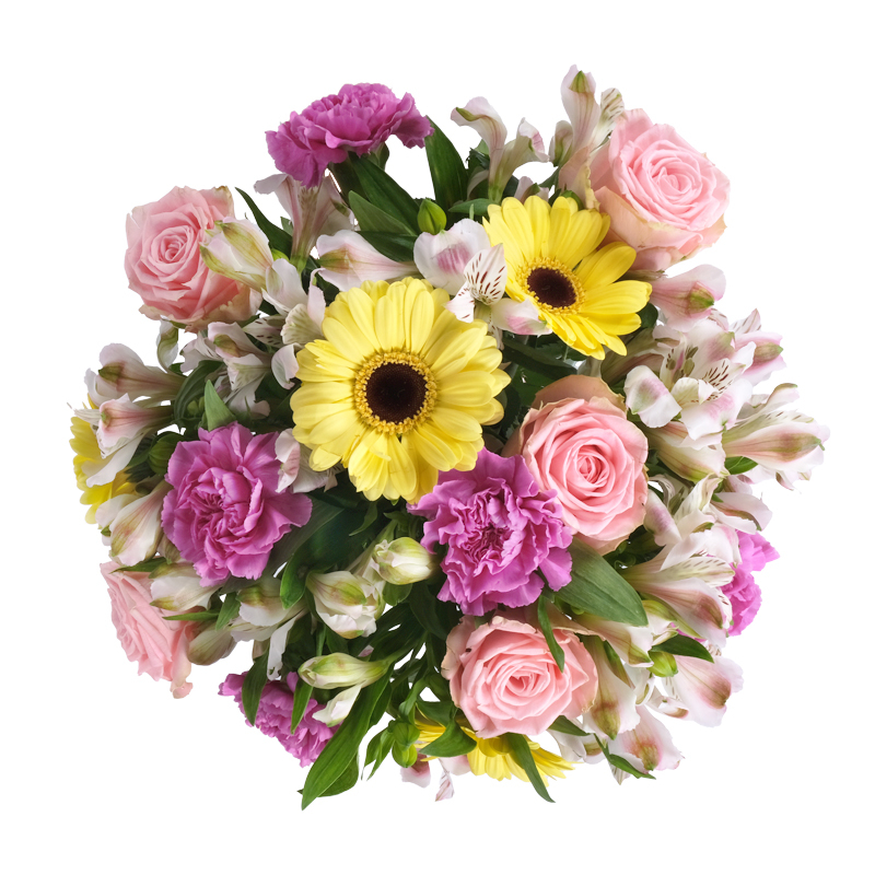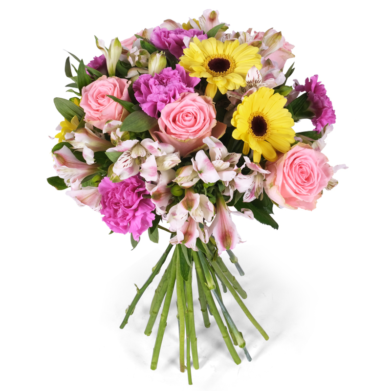 Zawsze świeże kwiaty Cztery kwiaty, cztery temperamenty w harmonii. Celebruj różnorodność, łącząc gerbery z różami, goździkami oraz alstromeriami. Podaruj bukiet, dodając do niego liścik i spraw, aby czyjś dzień stał się wyjątkowy!