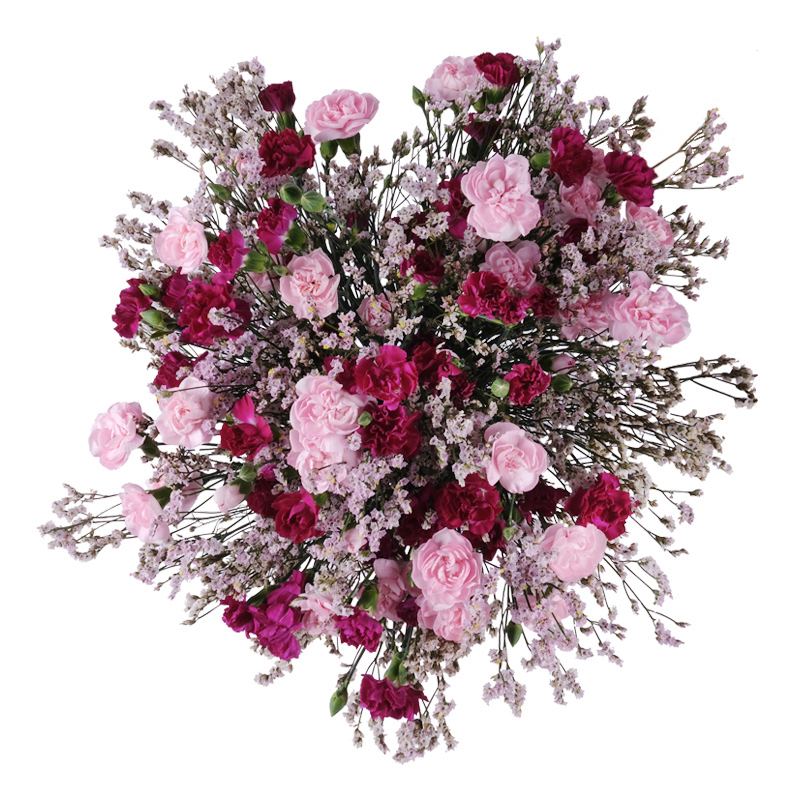 Bukiet „Z nutą goździka” urzeka świeżością – goździki gałązkowe w połączeniu z sezonowymi detalami tworzą kompozycję lekką i radosną.